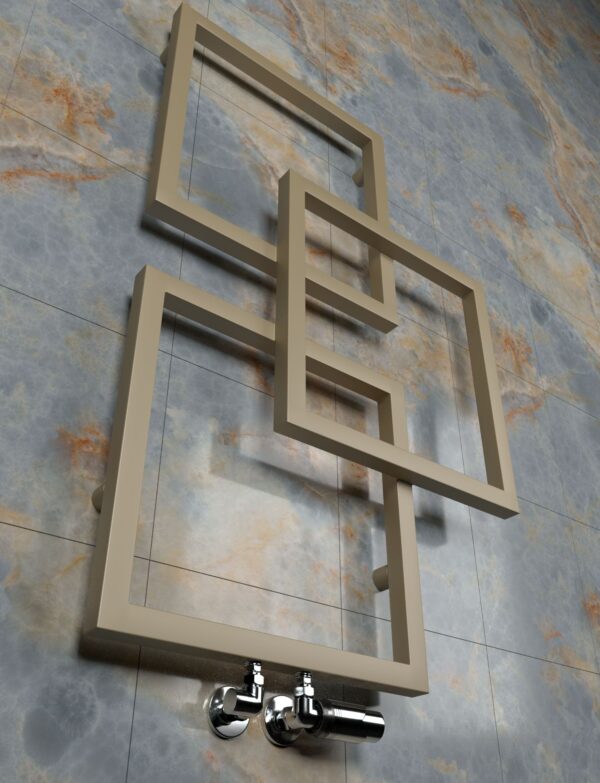 Ekstravagantiškas radiatorius geometriniu stiliu. Jis nepatiks kiekvieno namo interjerui, tačiau jei jūs įrengiate savo namą moderniu stiliumi, sunku rasti radiatoriaus modelį, kuris puikiau pabrėžtų jo charakterį. Nors jis turi menišką konstrukciją, taip pat turi praktinį panaudojimą – jo storos horizontalios juostos puikiai tiks drabužių, avalynės ar kitų medžiagų džiovinimui.