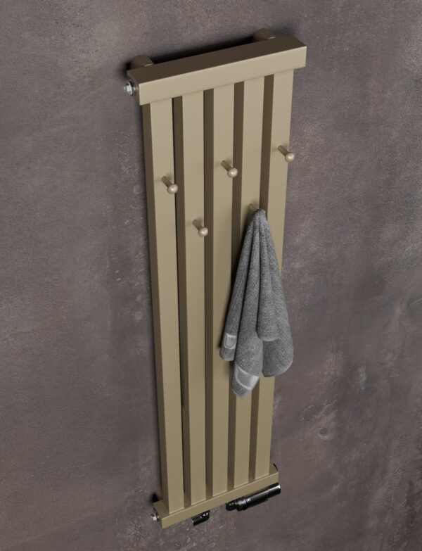 Vertikalus radiatorius su įmontuotais kabliukais yra idealus sprendimas vertinantiems funkcionalumą ir estetiką. Tvirtai privirinti kabliukai leidžia patogiai pakabinti rankšluosčius, chalatą ar net batus, todėl šis modelis puikiai tinka vonios kambariams ir prieškambariams. Inovatyvi, elegantiška konstrukcija užtikrina ne tik efektyvų šildymą, bet ir erdvės taupymą, kas ypač svarbu mažose patalpose. Radiatorius pasižymi aukštu šilumos efektyvumu, greitai paskirsto šilumą kambaryje ir suteikia komfortą visus metus. Tai nepakeičiamas pasirinkimas ieškantiems modernaus dizaino ir praktiškumo derinio.